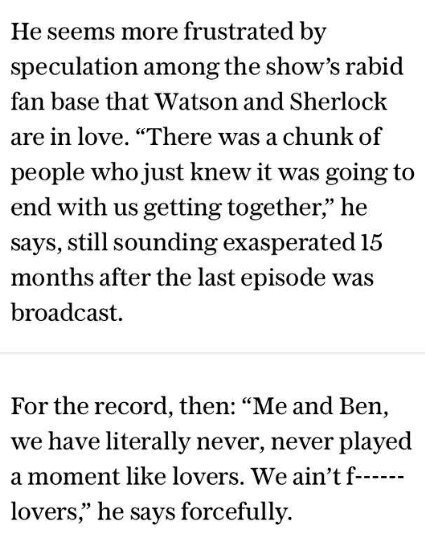 It's frustrating as well, because I imagine the people who were making these accusations are tiny section of the fans (and only a tiny section of the Johnlock people too). And now the idea has been put to rest (or has it?), surely there wouldn't be the same issues with S5?